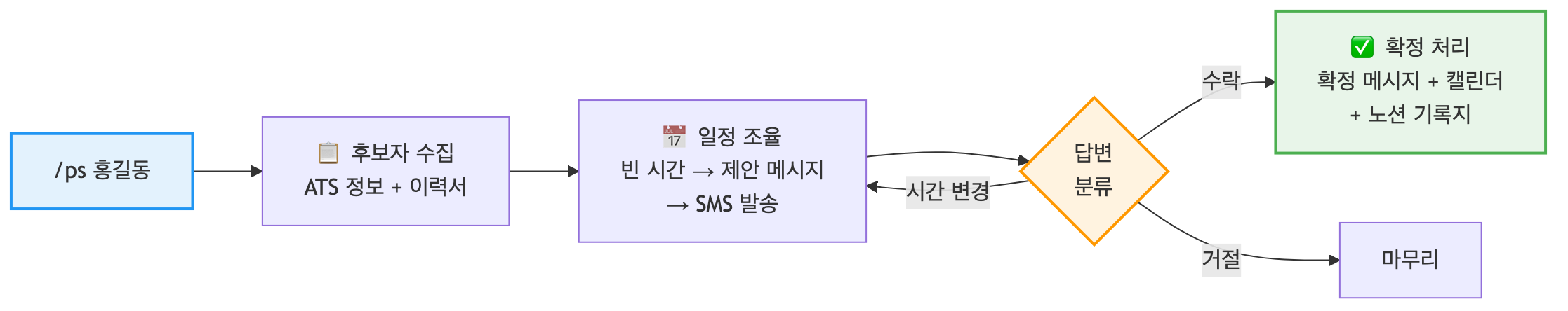 /ps 홍길동 한 마디로 수집 → 일정 조율 → 발송 → 확정 → 기록지 전체 자동 실행